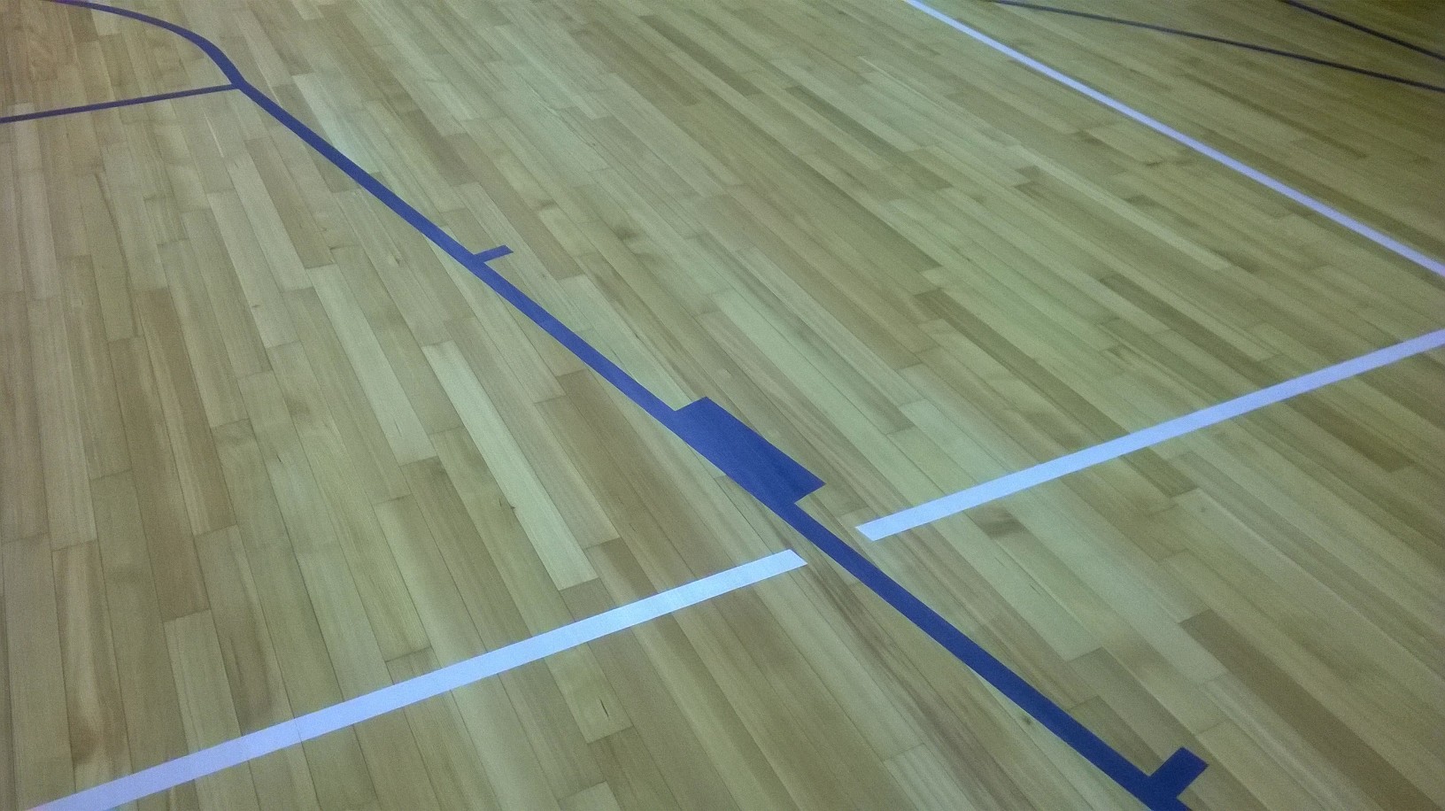 Выполнена разметка спортивного зала по баскетболу (синие линии) и волейболу (белые линии) по адресу: г. Воронеж, ул. Ленинский проспект, дом 11.