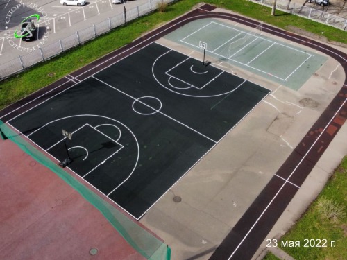 Разметка беговых дорожек и спортивной площадки по баскетболу, волейболу и мини-футболу на покрытии из резиновой крошки по адресам: Москва, ул. Профсоюзная, 11 и ул. Кедрова, 11.